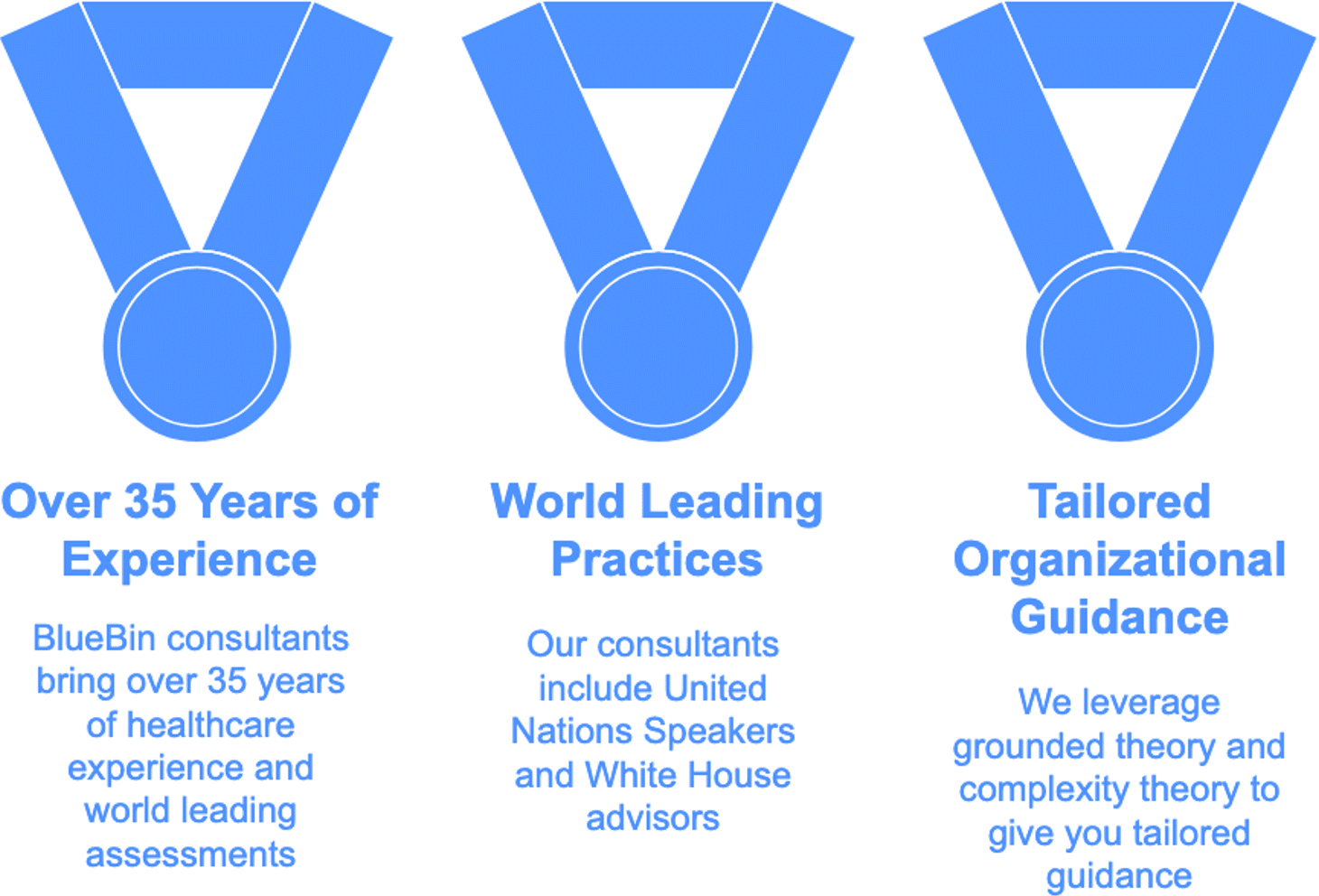 BlueBin is an innovative and experienced thought leader in healthcare resilience consulting with 35 years of industry experience and 25 years of comprehensive healthcare performance improvement consulting. Our consultants have provided over 3,000 pages of tailored guidance to more than 500 health systems nationally and globally, emphasizing cost-effective, impactful solutions. Our credentials include: